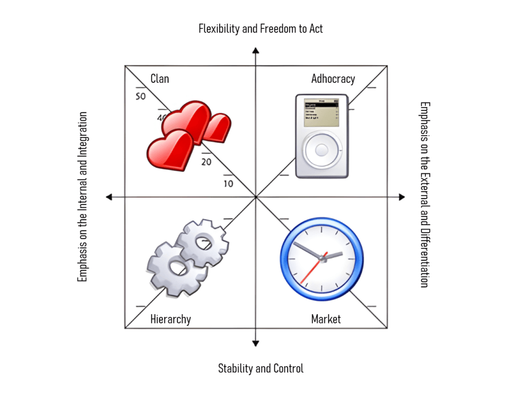- Clan: collaboration, closeness, development of people, sense of belonging.